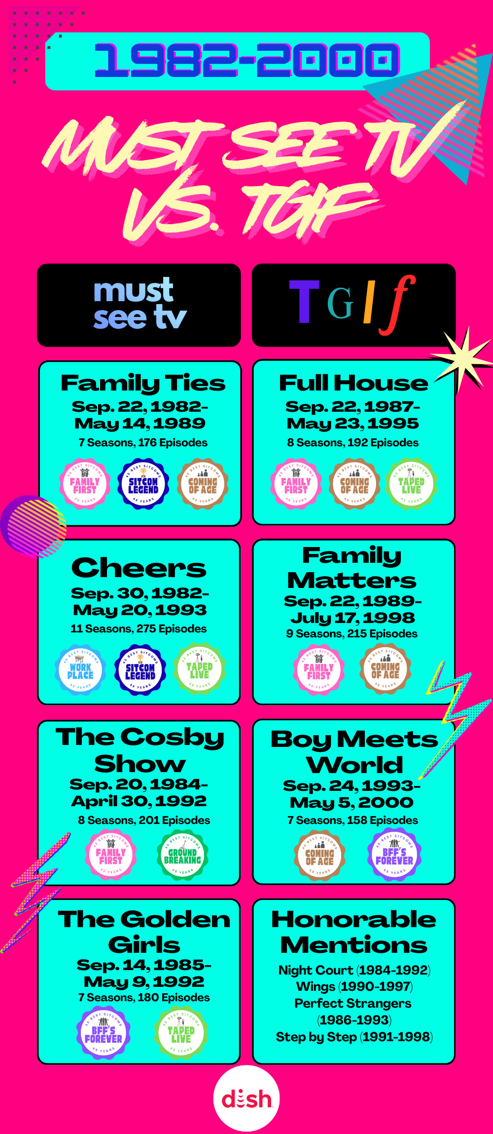 Here’s our list of the 45 Best Sitcoms of the past 45 Years. Not a DISH subscriber? Follow this link to find the best offer and subscribe to DISH today!